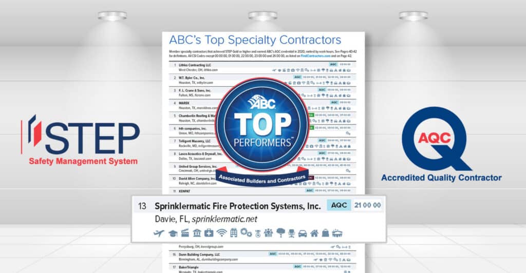Sprinklermatic is now recognized by ABC (Associated Builders and Contractors) as an AQC Accredited Quality Contractor. AQC Members proudly set the construction industry standard as highly performing, ethical contractors and members of their community.